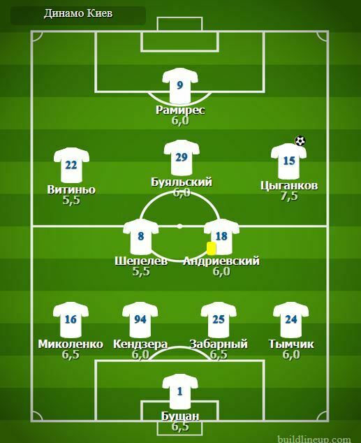 Замены «Динамо»: Де Пена – 6,0; Шапаренко – 6,0; Сидорчук – 6,5; Гармаш – 7,0; Караваев – б/о.