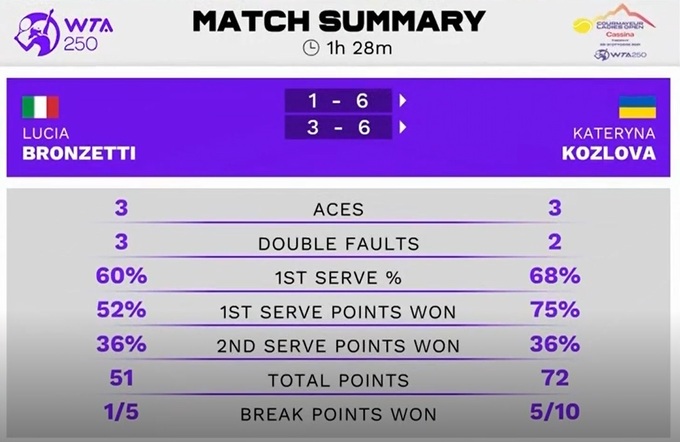 Катерина Козлова (Украина) – Лючия Бронзетти (Италия) – 6:1, 6:3