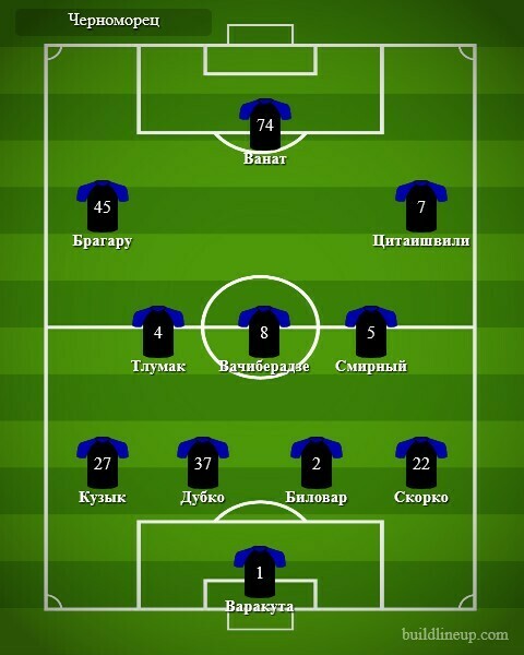 «Черноморец»: Варакута, Дубко, Биловар, Кузык, Скорко, Вачиберадзе (Кравченко, 85), Тлумак, Брагару (Долгов, 79), Смирный (Михайленко, 67), Цитаишвили (Авагимян, 67), Ванат (Бугай, 79).