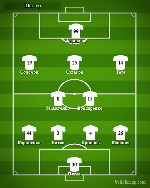 «Шахтер»: Пятов, Конопля (Додо, 59), Кривцов, Витао, Корниенко (Исмаили, 59), М.Антонио, Бондаренко, Тете (Марлос, 78), Судаков, Соломон (Мудрик, 69), Фернандо (Дентиньо, 69)