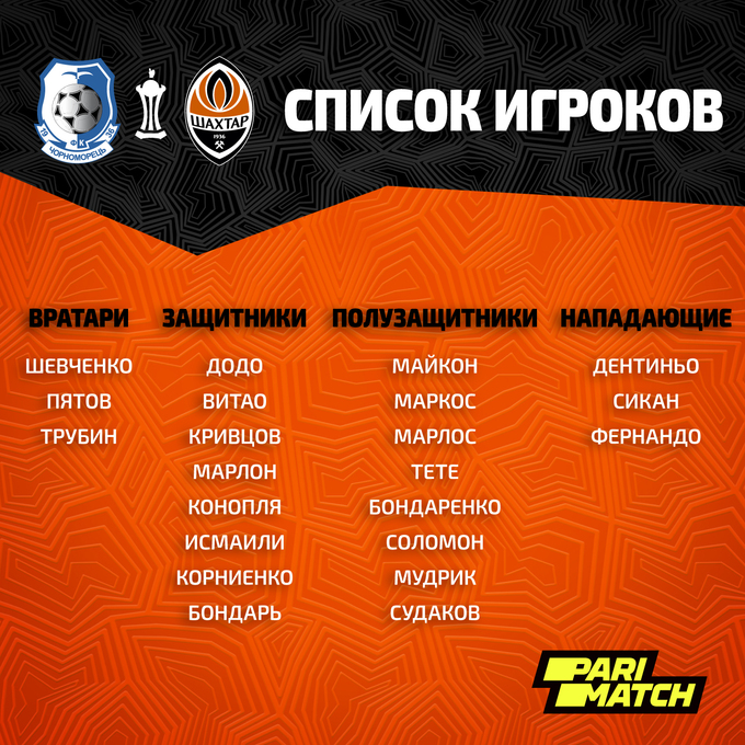 Полузащитники: Майкон, Маркос Антонио, Марлос, Тете, Бондаренко, Соломон, Мудрик, Судаков