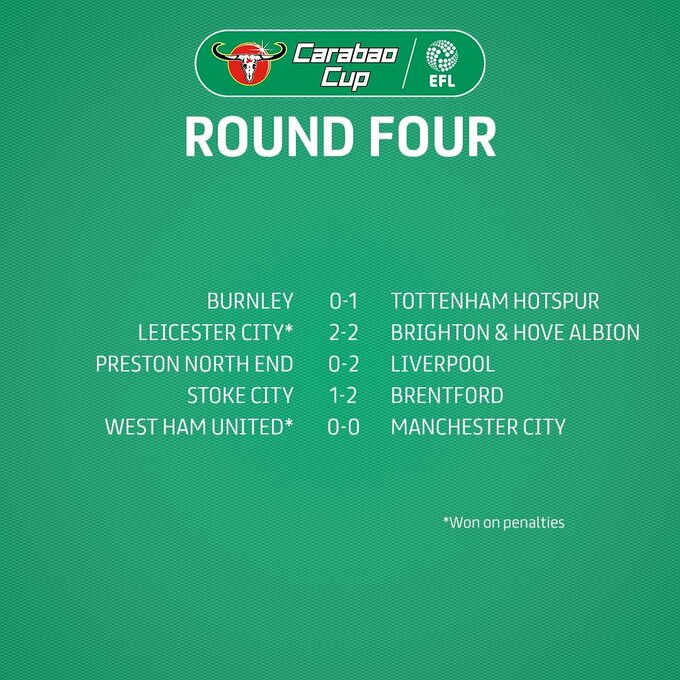 Также в 1/4 финала пробились «Тоттенхэм», «Ливерпуль», «Брентфорд» и «Лестер». Днем ранее в четвертьфиналы вышли «Арсенал», «Челси» и «Сандерленд». Жеребьевка 1/4 финала пройдет 30 октября.