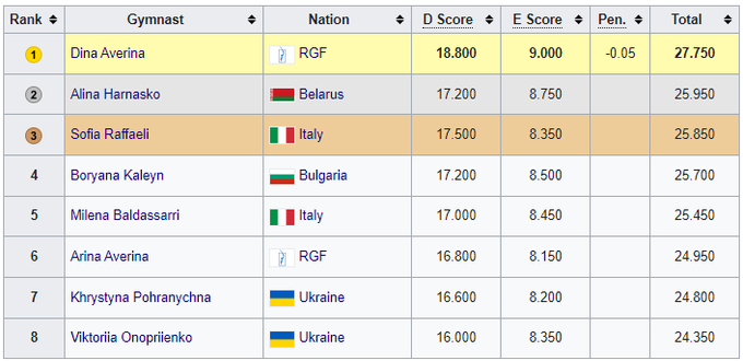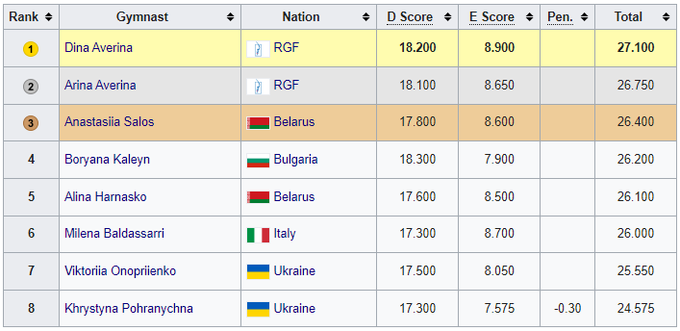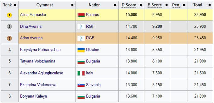 18-летняя украинская гимнастка Кристина Пограничная заняла 4-е место в финале с лентой, получив оценку 21.950 балла. В финал она квалифицировалась с 6-м результатом среди 63 участниц.