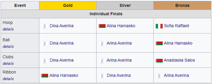 Призеры в отдельных упражнениях