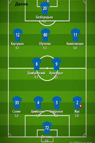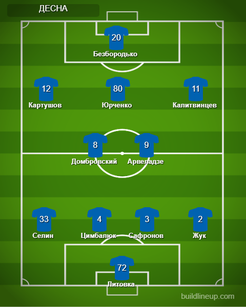 «Десна»: Литовка - Жук (Тотовицкий, 79), Сафронов, Цымбалюк, Селин, Картушов - Арвеладзе (Масалов, 69), Юрченко (Завийский, 69), Домбровский - Калитвинцев (Шевцов, 85), Безбородько (Будкивский, 79).