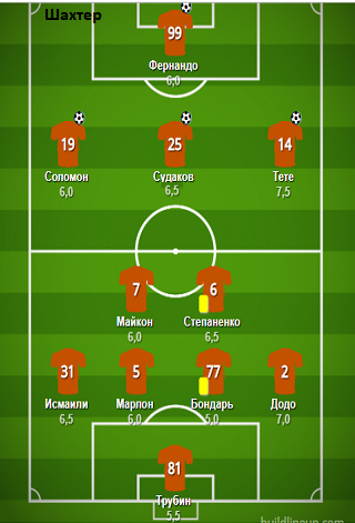 Запас: Пятов, Витао, Марлос, Бондаренко, Дентиньо.