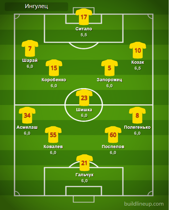 «Ингулец» (замены): Салем – 6,0, Коваленко – 6,0, Бартулович – б/о.