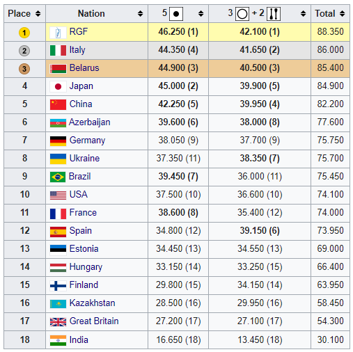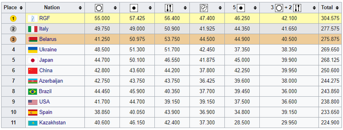У украинских спортсменок 8-я позиция в групповом многоборье