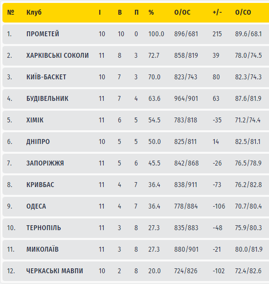 Лидер турнира «Прометей» обыграл «Николаев» (92:79), одержав 10-ю победу в 10 матчах чемпионата.