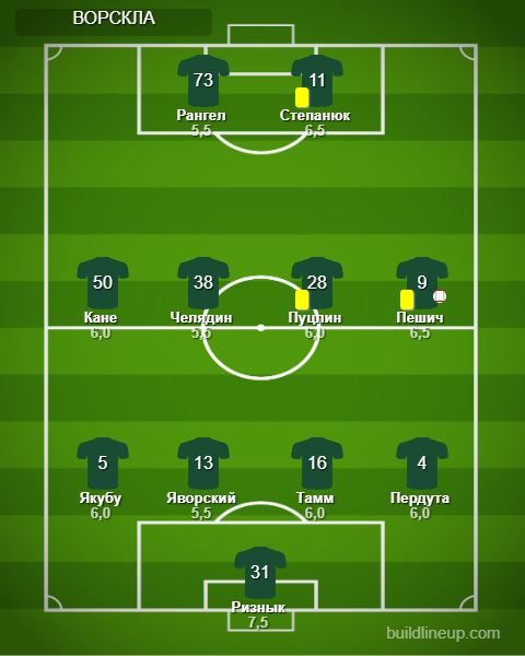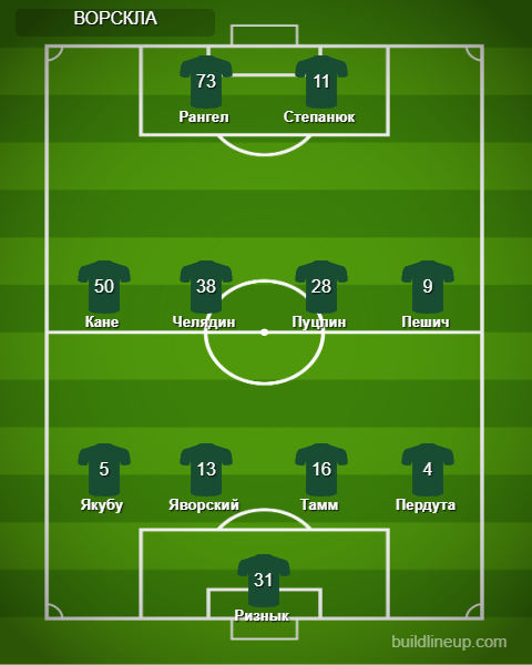 «Ворскла»: Ризнык - Пердута, Тамм, Яворский, Якубу - Пуцлин, Челядин - Пешич (Кравчук, 41, Чеснаков, 73), Кане - Степанюк, Рангел.
