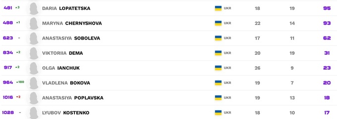 Что касается украинок, то Марта Костюк дебютирует в первой полусотне мировой классификации. Также улучшили свои позиции Ангелина Калинина, Леся Цуренко и Катерина Козлова. У Даяны Ястремской все плохо, после снятия очков за Чжухай-2019 она откатилась на сотое место и находится на грани вылета из первой сотни.