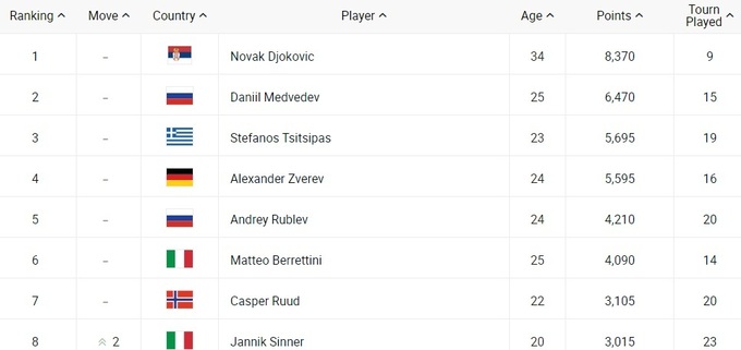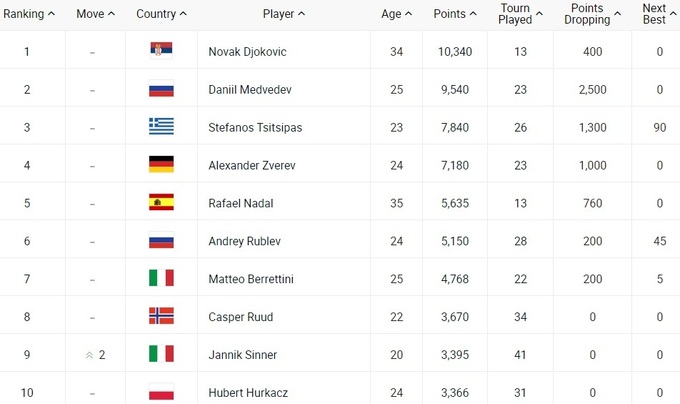 На прошлой неделе мужчины сыграли два турнира. На более престижных соревнованиях ATP Tour 500 в Австрии победу одержал немец Александр Зверев, который укрепился на четвертой позиции в мировом рейтинге. До полуфинала на соревнованиях в Вене дошел итальянец Янник Синнер, этого ему хватило для дебюта в топ-10. Еще один полуфиналист, юный испанец Карлос Алькарас, также установил личное достижение в мировой классификации – 35-е место.