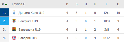 После 4-х туров киевляне лидируют в турнирной таблице группы Е и досрочно обеспечили себе выход в весенний раунд соревнований.