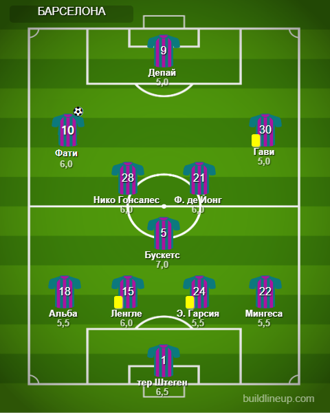Замены «Барселоны»: Дембеле – 6,5, Араухо – б/о, Бальде – б/о.