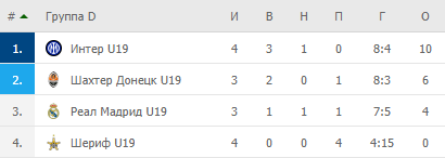 Юношеская лига УЕФА. Турнирная таблица группы D