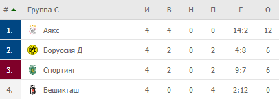 В матче 4-го тура Лиги чемпионов «Аякс» на выезде обыграл дортмундскую «Боруссию» (3:1) и вышел в 1/8 финала.