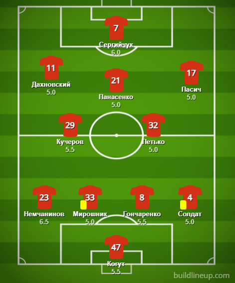 Запас: Кичак, Махнев, Шестаков, Пасич