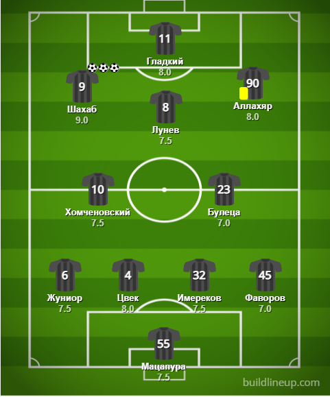 Аллахяр (45) – Солдат (28), Мирошник (38), Гечев (78)