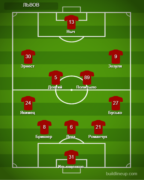 «Львов»: Ильющенков - Бусько (Ременяк, 69), Романчук, Лека, Брикнер, Якимец - Зозуля (Альваро, 54), Политыло (Шина, 76), Довгий, Эрнест (Семенив, 69) - Ныч (Крушинский, 54).