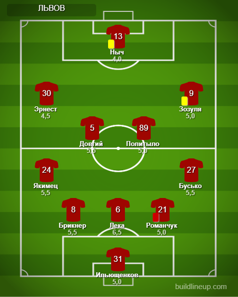 Замены «Львова»: Альваро - 5,0, Крушинский - 5,5, Ременяк - 4,5, Семенив - 5,0, Шина - 4,5.