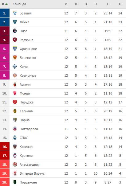 Турнирная таблица Серии B