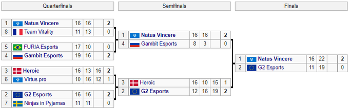 - 9–16 места: Entropiq, Copenhagen Flames, FaZe Clan, Astralis, MOUZ, Team Liquid, Evil Geniuses и ENCE – по $17,5 тысяч