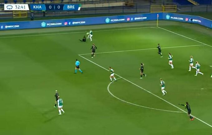 64 мин. Кочнева нарушила правила возле штрафной Брейдаблика.