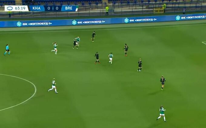 56 мин. Харьковчанки перехватили мяч перед штрафной Брейдаблика, но Овдийчук поспешила с ударом!