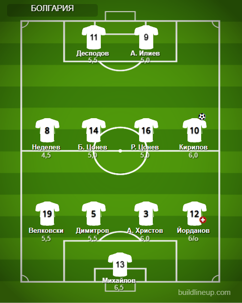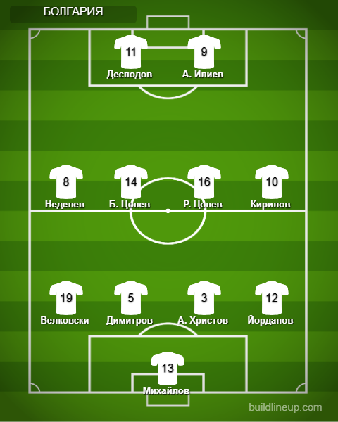 Запас: Караджов, Петков, С. Иванов, Д. Илиев, Цветанов, И. Илиев.