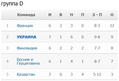 Тяжелая ситуация у Финляндии (21.09%), которая хоть и имеет неплохую позицию, но должна сыграть матчи против Франции, а также Боснии и Герцеговины.