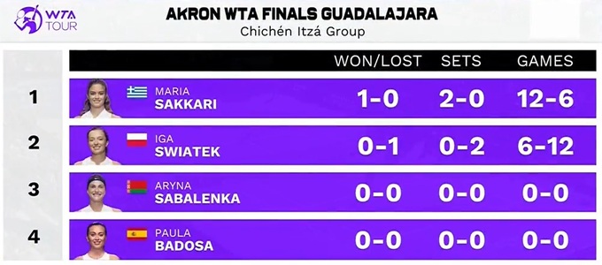 В первой встрече группы Чичен-Ица Саккари в двух сетах одолела польку Игу Свёнтек.