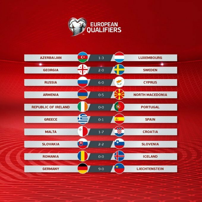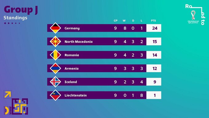 Две сборных уже забронировали себе путевки на мундиаль: Дания досрочно выиграла группу F, а Германия обеспечила себе первое место в группе J.