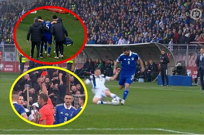 Сборная Финляндии еще в первом тайме матча отбора ЧМ-2022 против Боснии и Герцеговины осталась в меньшинстве.