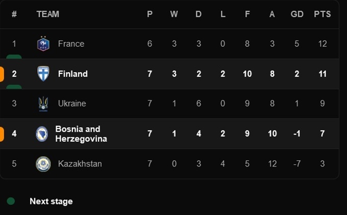По итогам матча отбора ЧМ-2022 Босния - Финляндия, который завершился со счетом 3:1 в пользу гостей, сборная Боснии с 7 очками официально прекратила борьбу за 2-е место группы и выход в стыковые матчи.