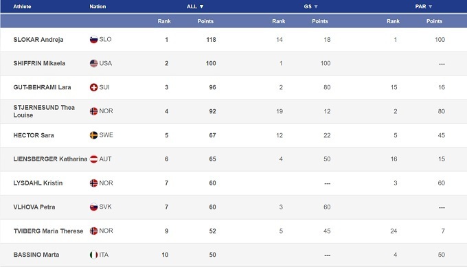 У женщин также состоялась премьерная победа на Кубке мира – ее одержала Андрея Слокар. В концовке прошлого сезона талантливая словенка дважды попадала в топ-10 в классическом слаломе, поэтому не исключено, что теперь Слокар начнет в полной мерей оправдывать выданные авансы. А пока что словенка неожиданно вышла в лидеры общего зачете Кубка мира. Компанию на подиуме ей составили две норвежки – Теа Луиза Стьернесунд и Кристин Лисдаль. При чем они выглядели как раз спортсменками, которые целенаправленно готовились к параллельным соревнованиям. Четвертой стала Марта Бассино, которая частично отыгралась с точки зрения общего зачета за сход на открытии сезона в Зольдене. Лара Гут-Бехрами и Катарина Линсбергер заняли 15-е и 16-е места соответственно, а больше никто из претендентов на общий зачет в Лех/Цюрс не приехал.