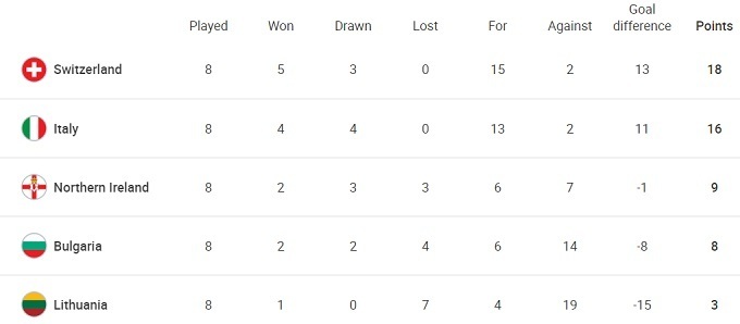 В последнем туре отборочного турнира к ЧМ-2022 в группе С сборная Швейцарии дома разгромила Болгарию 4:0 и завоевала прямую путевку на мундиаль. Сборная Италии так и не смогла взломать оборону Северной Ирландии – теперь команда Роберто Манчини сыграет в плей-офф. А Северная Ирландия так и не пропустила ни одного гола в домашних матчах отбора.