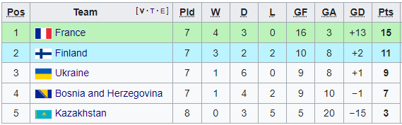 Таким образом, если вдруг Украина победит Боснию в один мяч, то забить надо хотя бы на один гол больше, чем Финляндия в этот день (если финны играют вничью с Францией).