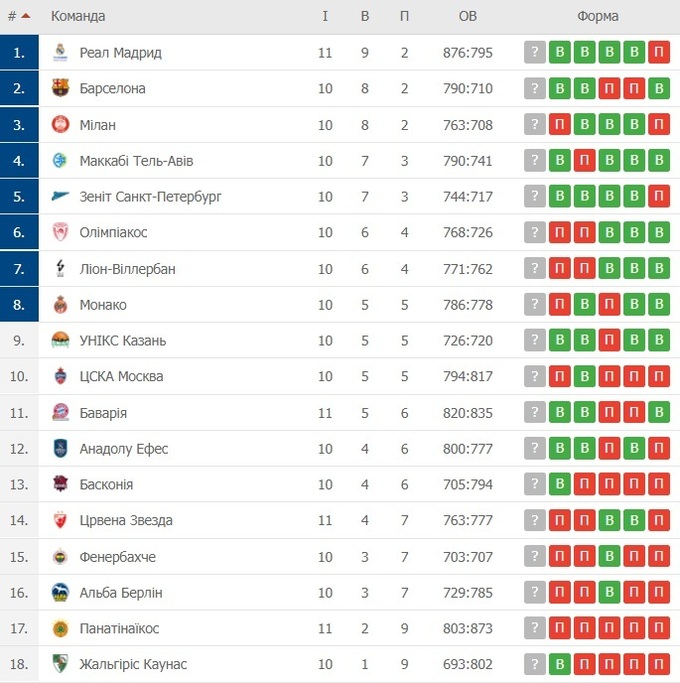 Евролига. Барселона обыграла Панатинаикос, Реал сильнее Црвены Звезды