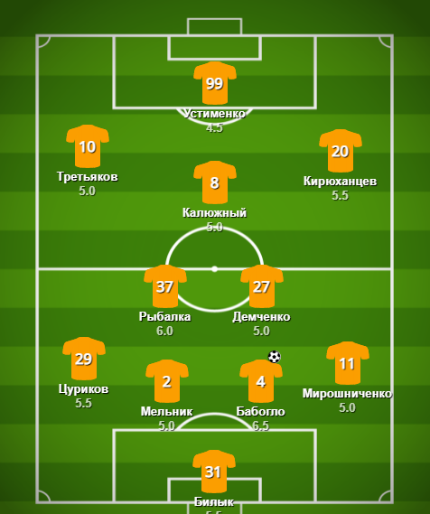 Запас: Горох, Бухал, Одарюк, Новиков, Дубра