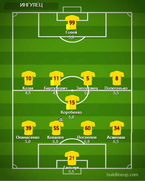 Замены «Ингульца»: И. Коваленко - 6,0, Лупашко - 5,5, Шарай