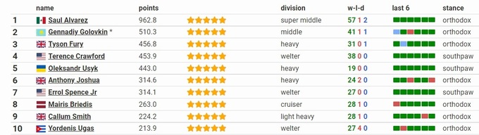Що там на 2 місці робить Головкін, який вже стільки часу не боксує.