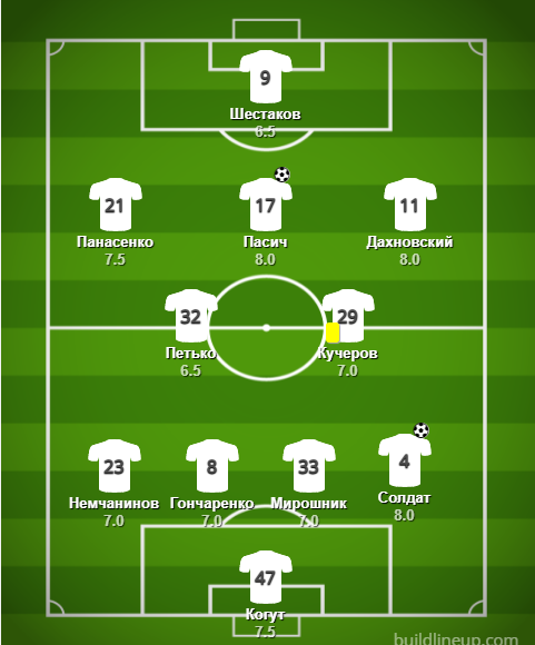 Запас «Вереса»: Сергийчук - 6,0, Тимофеенко - 6,0, Гегедош - 5,5, Гечев - б/о, Полулях - б/о