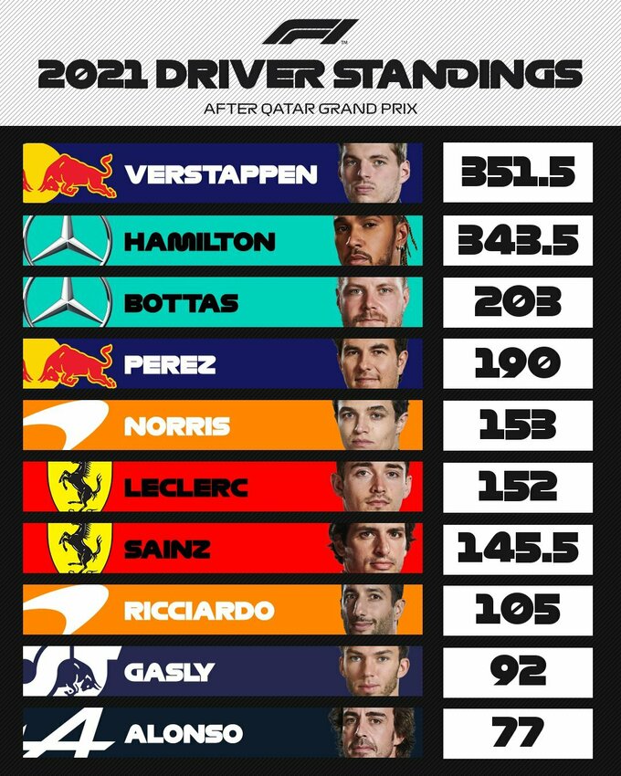 Перед стартом гонки в Катаре для Ред Булла было две плохие новости. Во-первых, Мерседес нашел дополнительную скорость и выглядит явно быстрее соперника. Во-вторых, Макс Ферстаппен, который должен был стартовать вторым позади Льюиса Хэмилтона, получил штраф в 5 позиций за нарушение правил желтых флагов в квалификации и начинал гонку 7-м. Благо для Быков, трасса позволяла отыгрывать позиции, но Хэмилтон получил хорошие шансы сократить отставание в общем зачете.