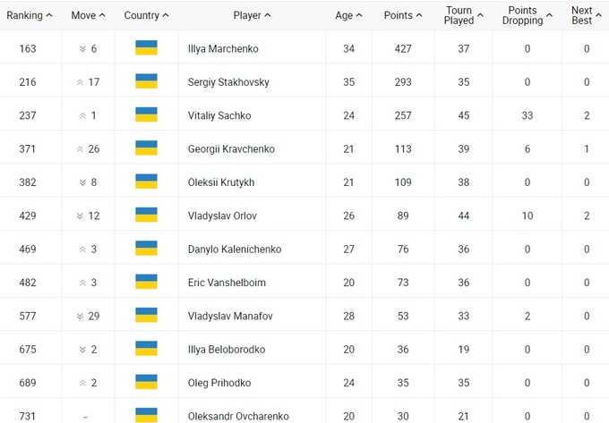 Что касается украинцев, то Илья Марченко потерял 6 позиций, а Сергей Стаховский поднялся на 17 строчек. Также продолжает добавлять Георгий Кравченко, который стал уже четвертой ракеткой Украины. У Виталия Сачко и Алексея Крутых, которых вызвали в сборную Украины, +1 и -8 позиций соответственно.