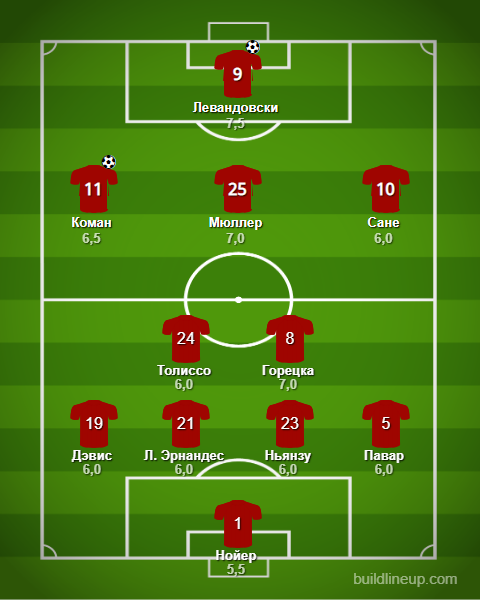 Замены «Баварии»: Сарр – 5,0, Рока – 5,5, Тилльман – б/о, Ричардс – б/о.