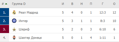 В плей-офф ЛЧ вышли «Реал» и «Интер». А вот «Шериф» теперь сыграет в Лиге Европы. Донецкий «Шахтер» замкнул турнирную таблицу и выбыл из еврокубков.
