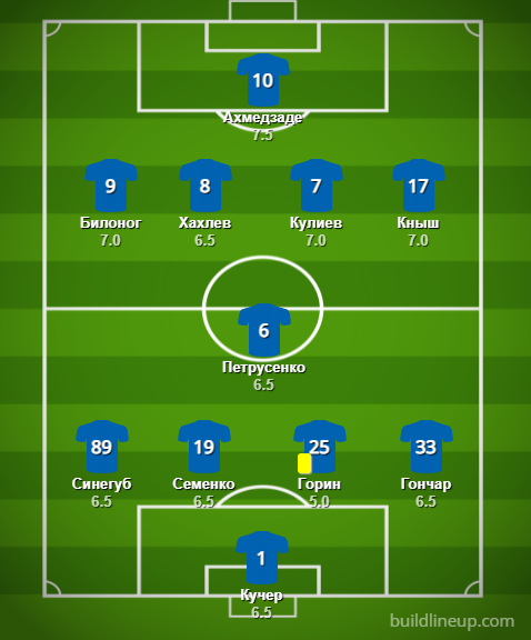 Запас «Динамо»: Де Пена - 7,0, Караваев - 6,5, Шкурин - 6,5, Антюх - б/о
