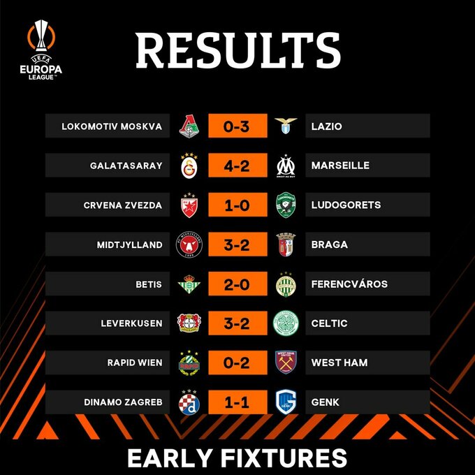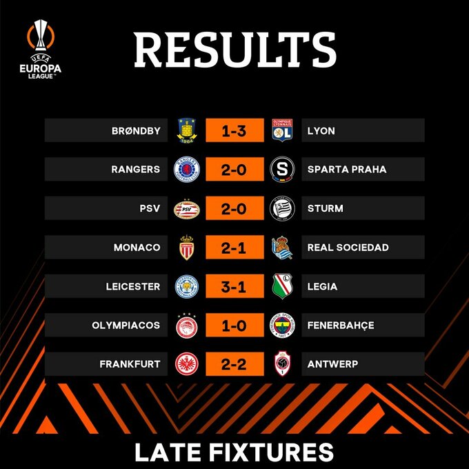 - Лестер (Англия) – Легия (Польша) – 3:1