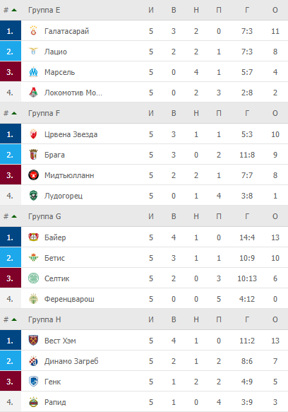 25 ноября прошли матчи 5-го тура группового этапа Лиги Европы
