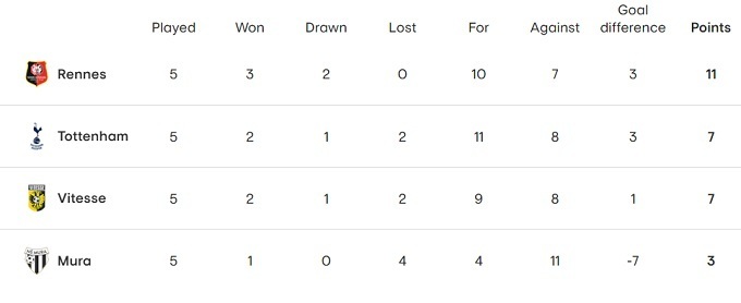 В другом матче группы G «Ренн» и «Витесс» выдали результативную ничью 3:3. «Ренн» досрочно обеспечил себе первое место в группе, а «Витесс» догнал «Тоттенхэм» и поставил выход команды Конте в плей-офф под большой вопрос.